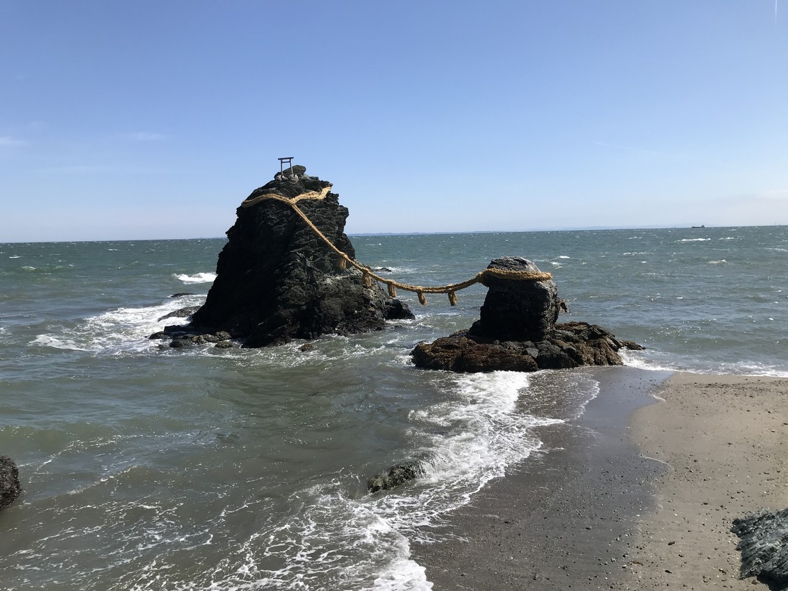 ⇩翌日訪れた夫婦岩です。大海の波は瀬戸に暮らす私にとって新鮮な感動がありました。