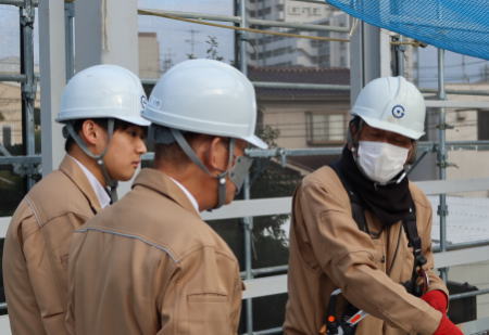 実際の現場で施工中の仲間の写真を撮影。