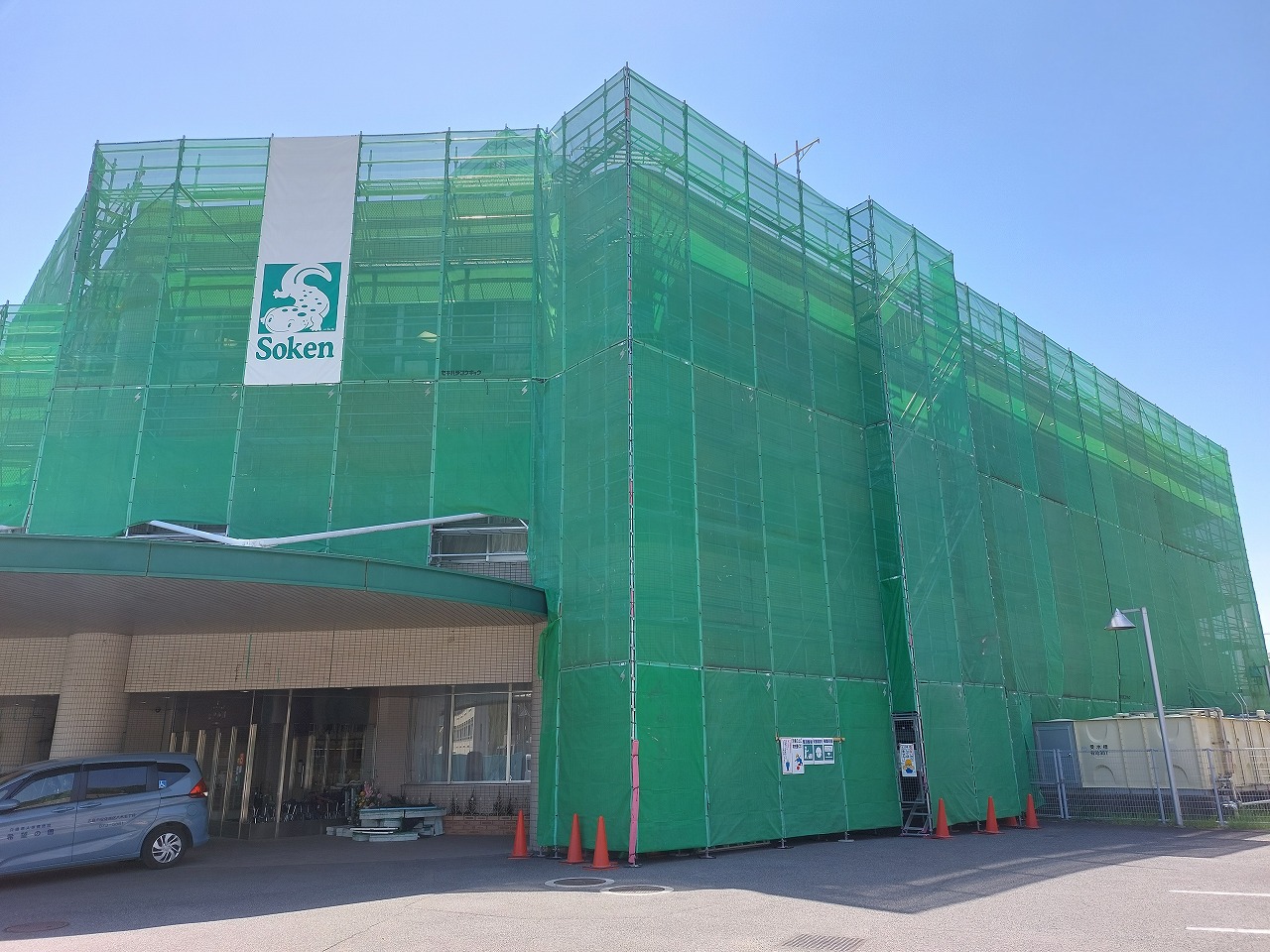 綺麗に足場が組まれており、順調に工事が進んでいます。