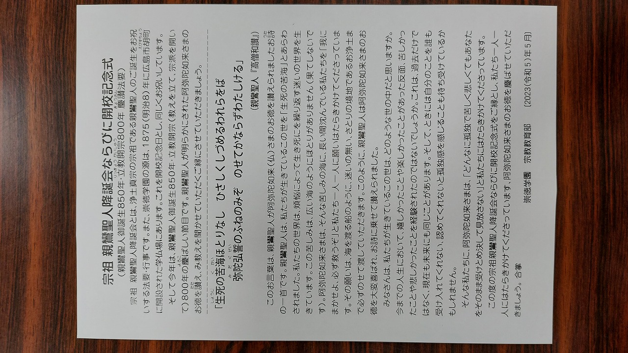 2023/05/13 親鸞聖人降誕会と開校記念式