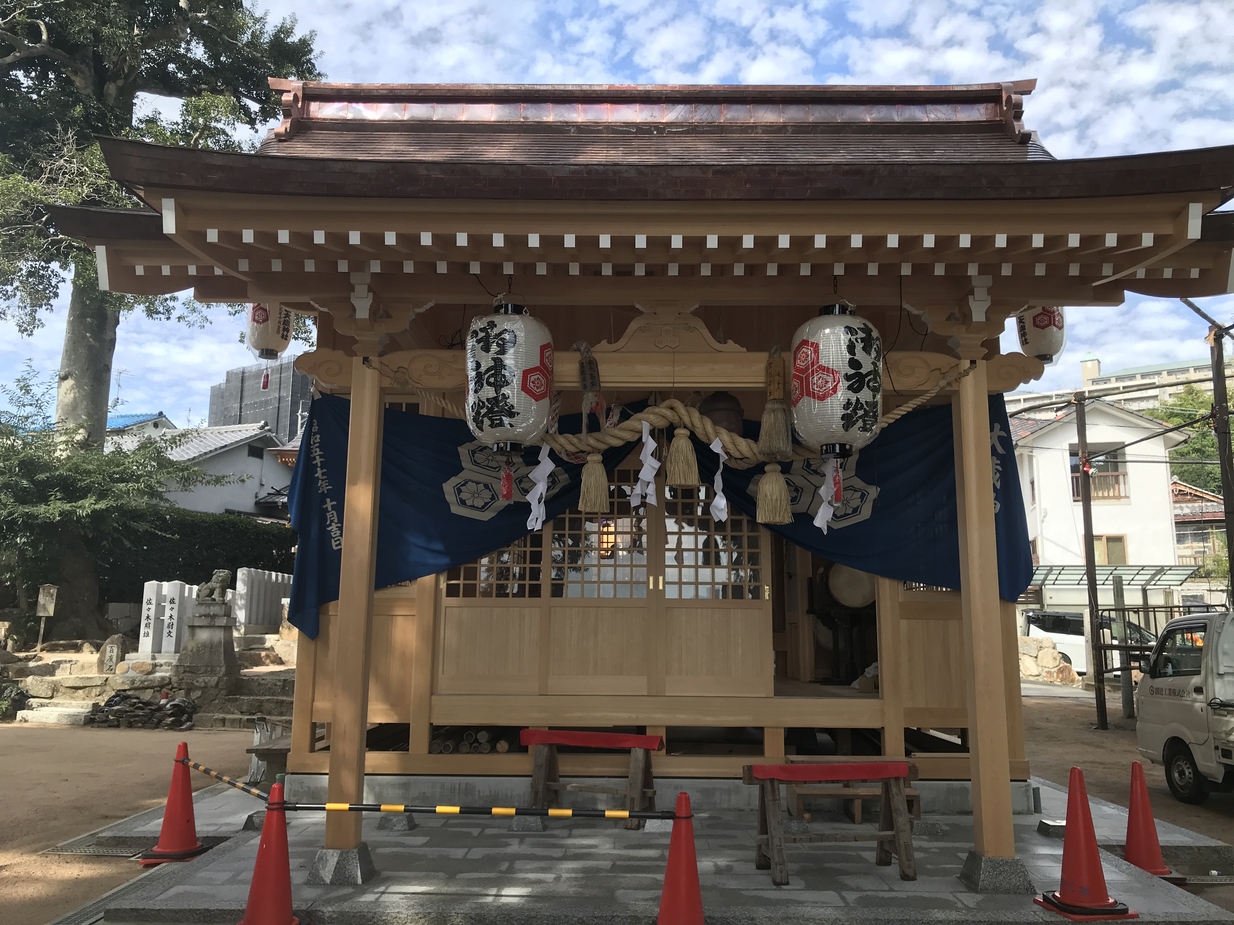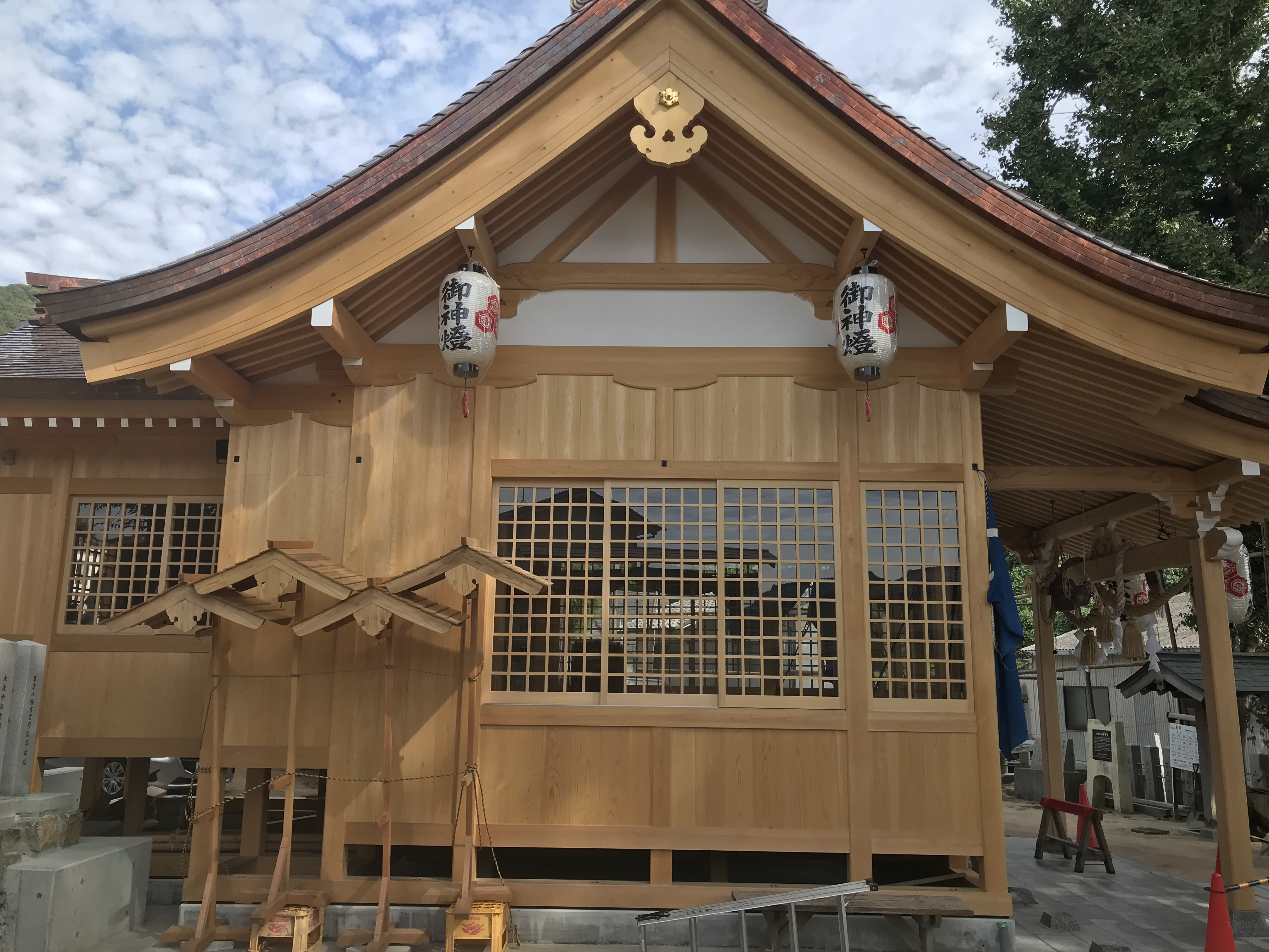 大歳神社も内装工事を残すだけとなり、今は竣工に向けて工事を進めています。外観はほぼ仕上がりましたので、何枚か写真を掲載いたします。